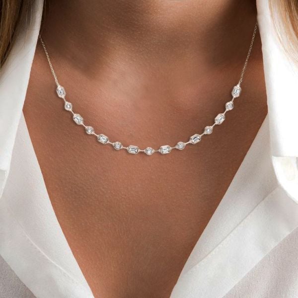 Creating a well-balanced emerald cut tennis necklace is as much about engineering as it is about design. Each stone must align perfectly, and each link must move smoothly to ensure the necklace drapes naturally.