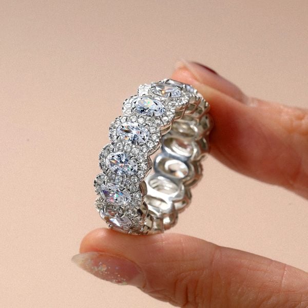 Beyond its appearance, the oval ring with halo carries a quiet symbolism. The oval shape, with no sharp corners, suggests continuity and flow—something ongoing rather than fixed. The halo, encircling the center stone, can be seen as a form of protection or unity. Together, they create a design that feels complete, as if everything is held exactly where it belongs.