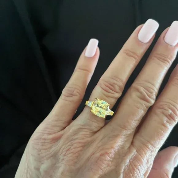 OCCASION - A Timeless Treasure and Style Classic, our rings are always fit for any occasion. Beautifully yellow sapphire engagement rings is sure to win your way into her heart. Four-claw set 5.50-carat mat cut yellow center stone shines brightly, and white round gemstones surround to add luster. This bright ring is perfect for your summer wardrobe.