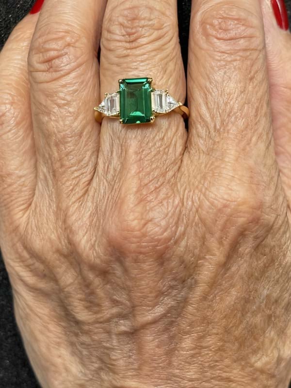 Emerald Cut Green Double Side Stones Emerald Engagement Ring
