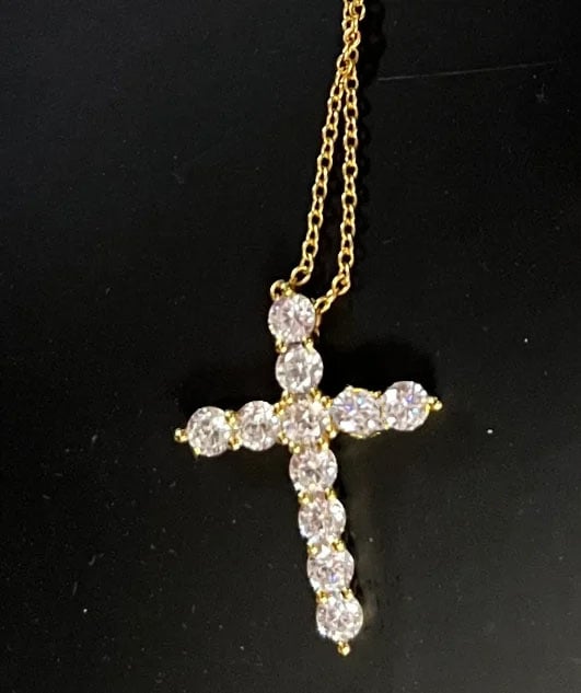 【Stone】Your love shines through every detail of this Pendant Necklace. This Golden Cross Design Pendant Necklace is made of white sapphire round-cut gemstones with a prong stone setting that has a total carat stone weight of 1.10 CT.TW. The necklace is made of 925 sterling silver metal and has a total chain length of 17'', 18'', 20'', 22'', and a total weight of 4.5g. It is nickel-free, and shines a platinum appearance.