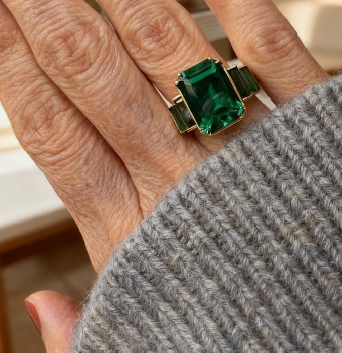 Golden Seven Stone Emerald Engagement Ring Unique Engagement Ring