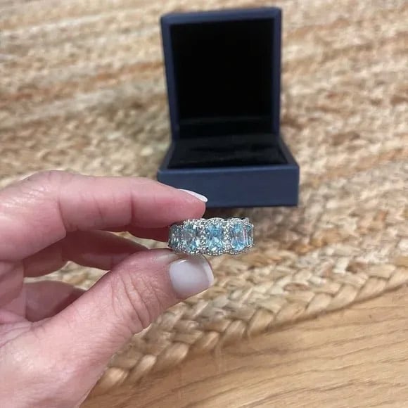 Italo Aquamarine Ring Cushion Cut Eternity Wedding Band For Women