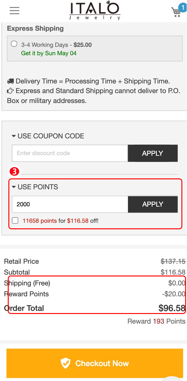 Click the “USE POINTS” button and then just fill in the number of points you’d like to use and click “APPLY” button. The points are successfully used as money now!