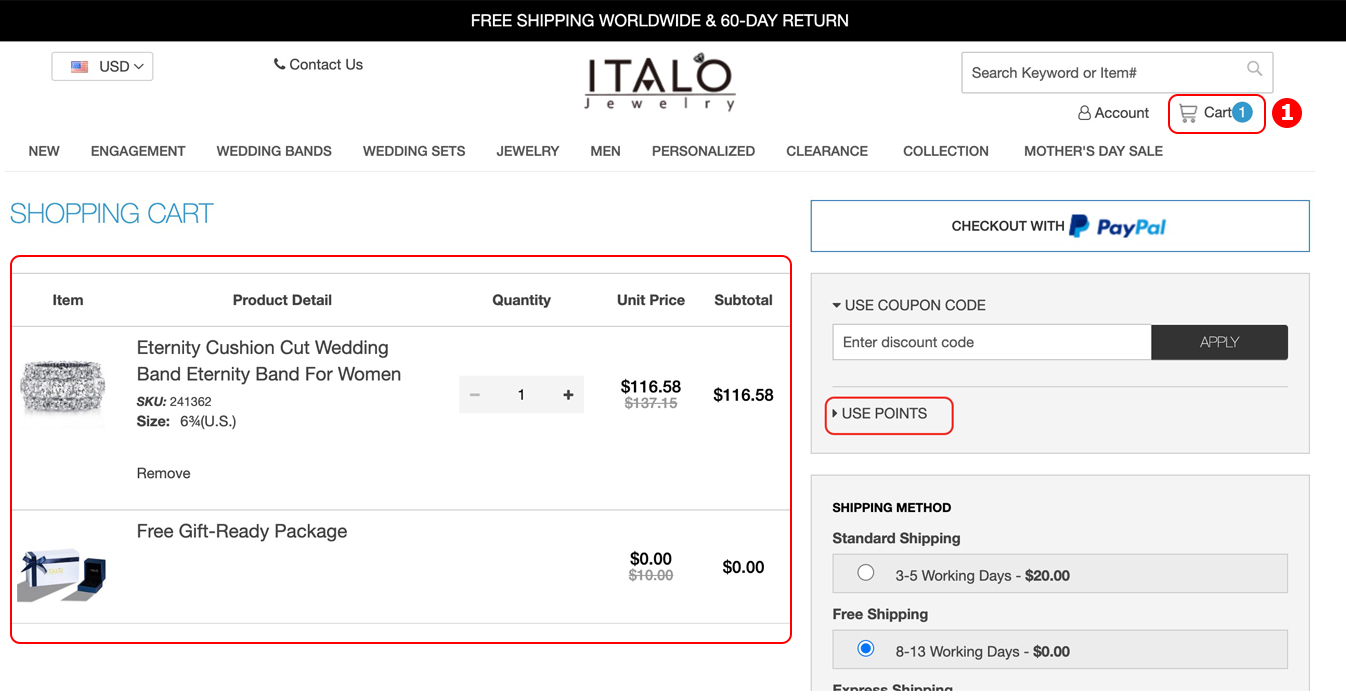 Step 2 Go to shopping cart