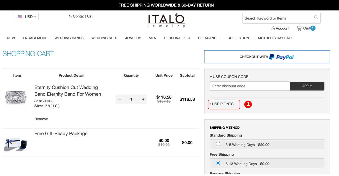 You may not be able to use your points if your cart is empty, so make sure there is at least one item in your shopping cart.