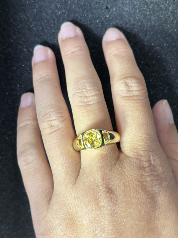 Italo 2 Carat Cushion Cut Yellow Topaz Three Stone Engagement Ring For Women