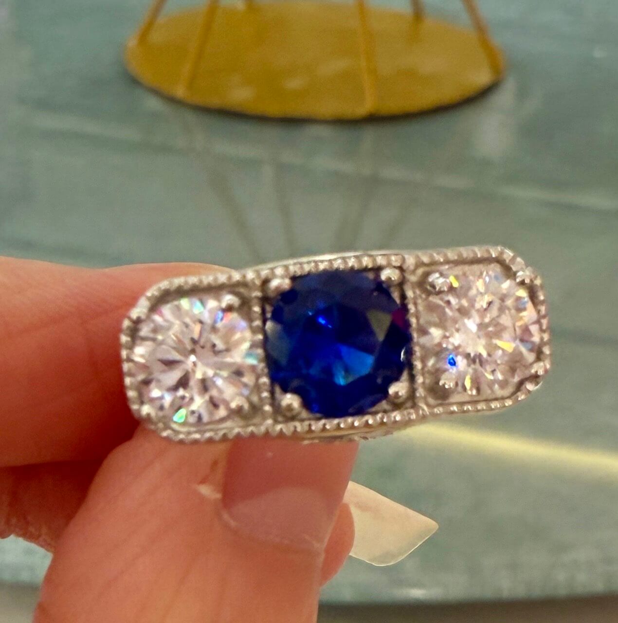 【Design】 Embrace timeless romance with Italo Jewelry's 3 Stone Unique Engagement Rings, showcasing a stunning 2.98 CT trio of blue and white sapphires! These magnificent 3 Stone Unique Engagement Rings are crafted from premium 925 sterling silver with a 10mm wide band (5.40g), featuring a dazzling 7mm blue center stone flanked by brilliant white sapphires in classic prong settings.