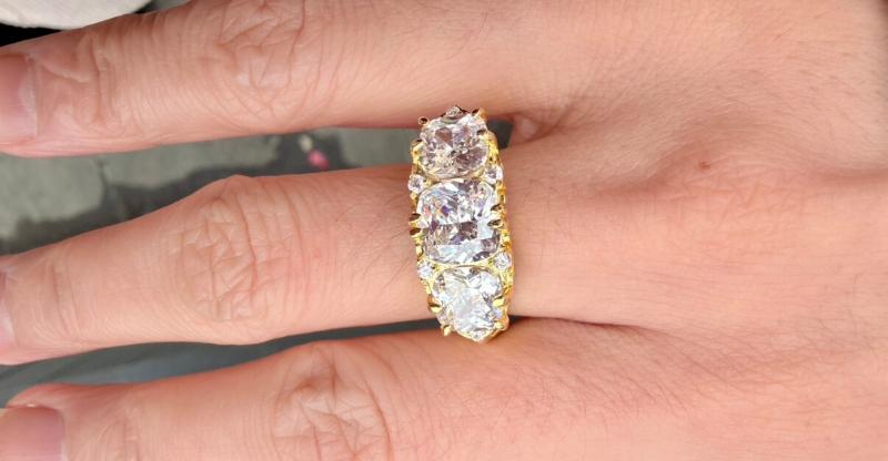 Italo 3 Stone Cushion Cut Filigree Engagement Ring