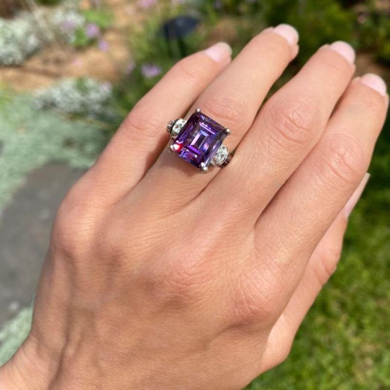 Italo Amethyst Emerald Cut Vintage Engagement Ring For Women
