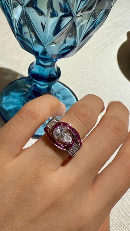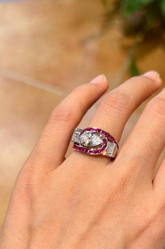 Italo Art Deco Pear Shaped Ruby Engagement Ring For Women