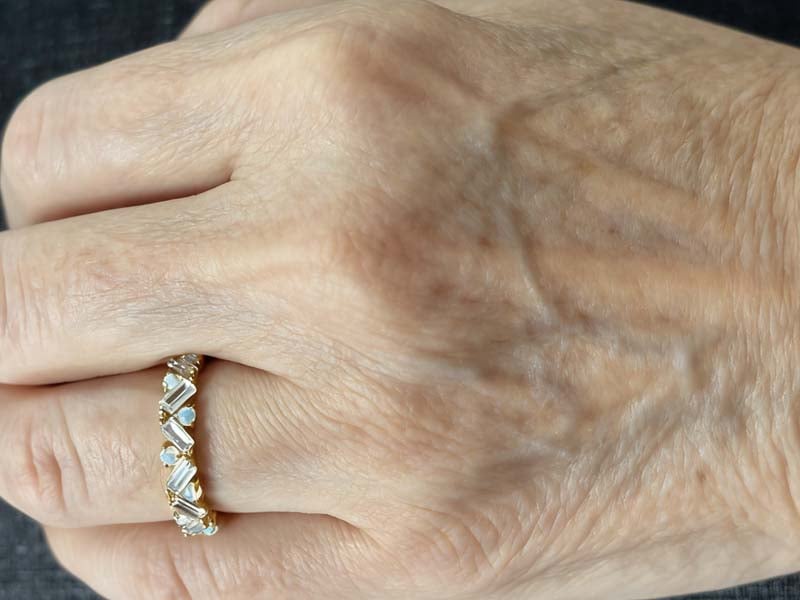 Discover ItaloJewelry's Baguette Cut Half Eternity Opal Wedding Band, a luxurious symbol of enduring love. This Opal Wedding Band skillfully combines vintage grace and modern style, offering a timeless piece for generations.