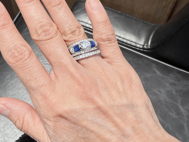 【Design】Admire our magnificent 3.26-carat Bridal Set Wedding Band Ring, featuring an exquisite combination of baguette and round-cut blue & white sapphires that makes this Bridal Set Wedding Band Ring a true masterpiece of jewelry art!