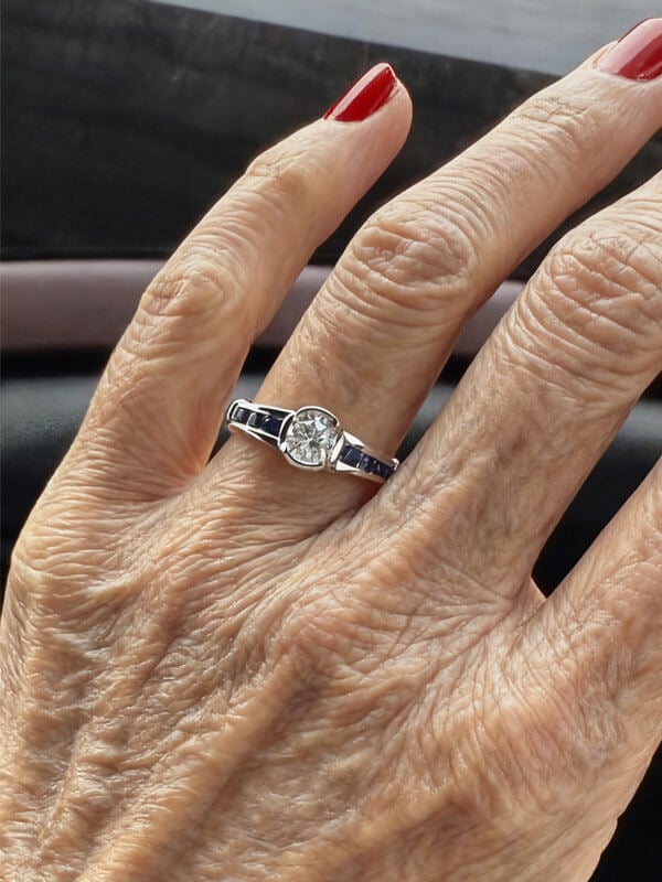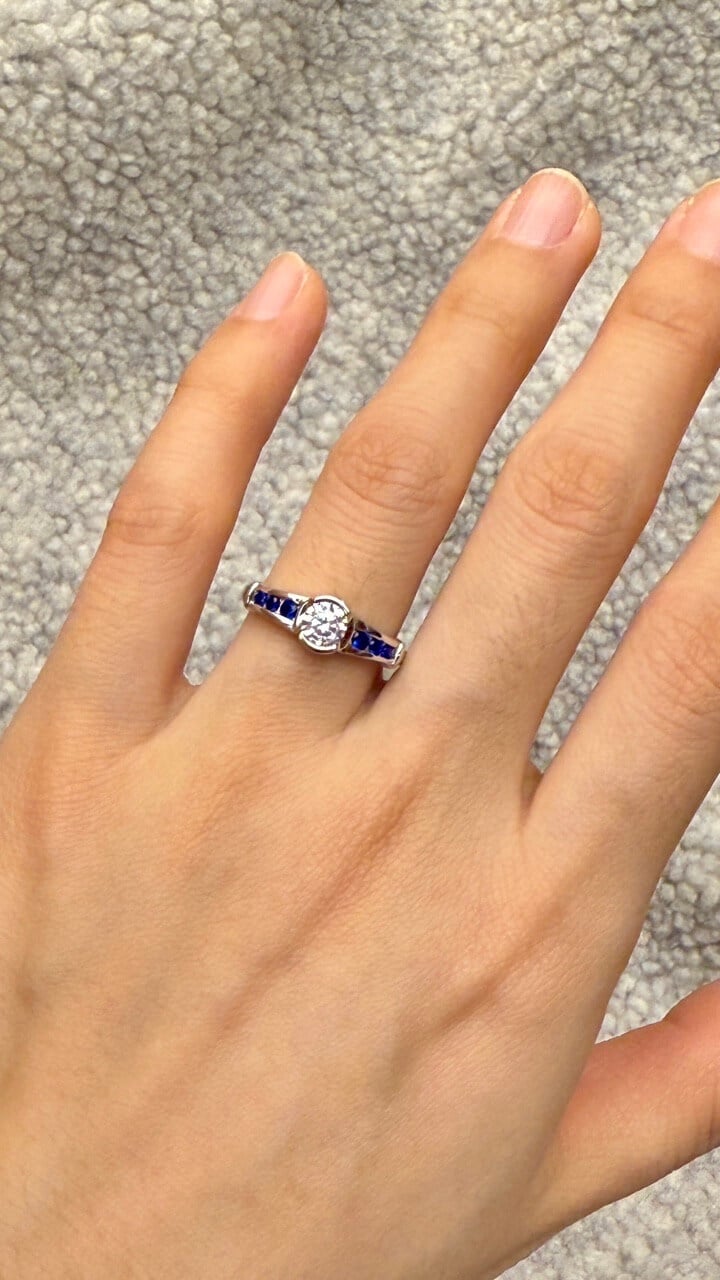 Italo Bezel Blue Sapphire Ring White Sapphire Engagement Rings