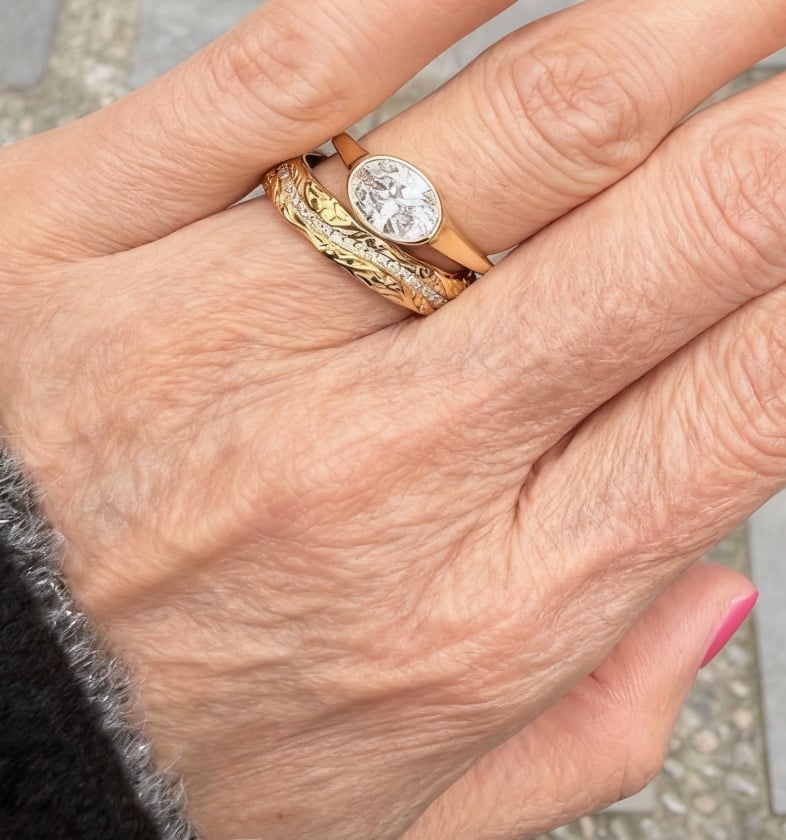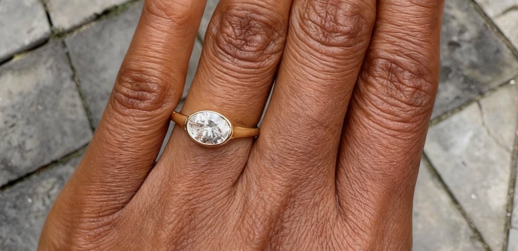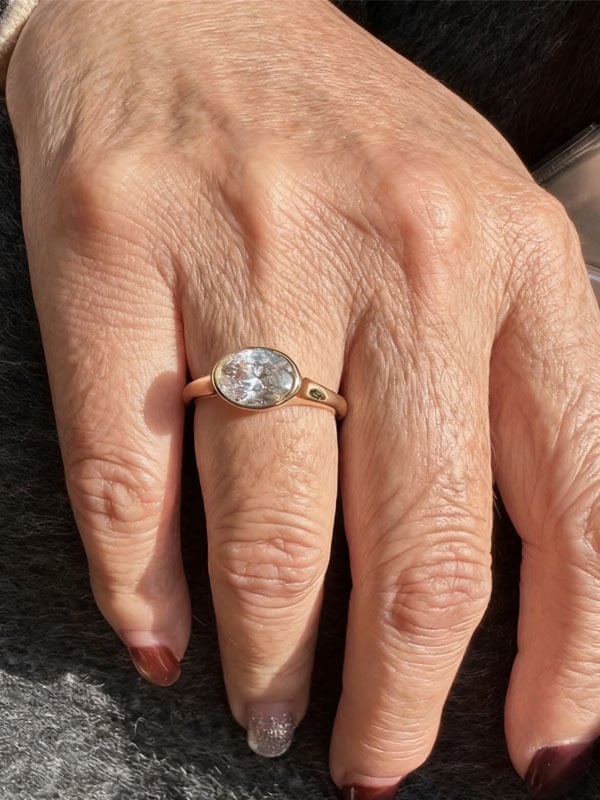 Italo East West Oval Cut Bezel Setting Solitaire Engagement Ring