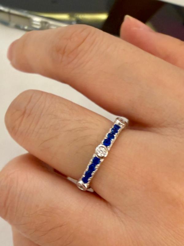 The perfect White & Blue Sapphire Eternity Band makes an unforgettable gift! This elegant 925 Sterling Silver ring, adorned with 0.61 CT sparkling sapphires, is ideal for anniversaries, birthdays, or just because she deserves it!