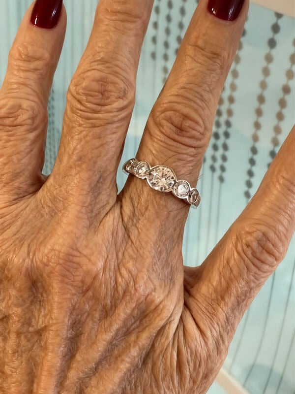 A symbol of eternal commitment, these 5 Stone Silver Wedding Bands make an ideal anniversary or wedding gift. The hypoallergenic design and timeless elegance ensure it’s cherished forever!