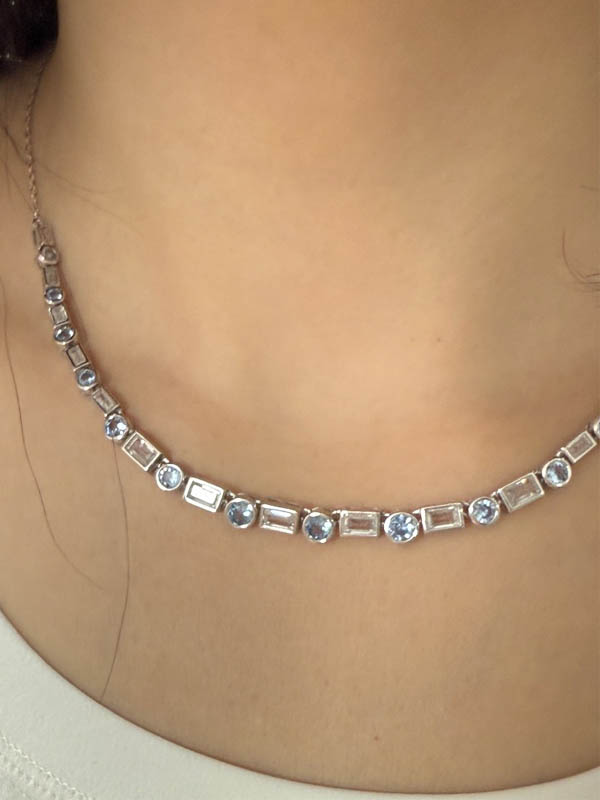Italo Bezel Set Baguette & Round Cut Blue Topaz Necklace For Women