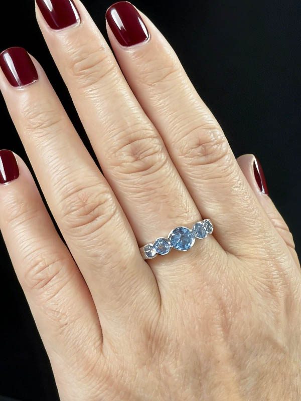 Italo Bezel Set Five Stone Blue Topaz Engagement Ring Promise Ring