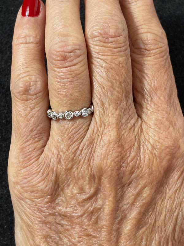 【Great Gift】 Perfect for anniversaries or special occasions, these gorgeous Bezel Set Eternity Rings make a meaningful and practical gift. The rhodium-plated finish and nickel-free design ensure both lasting shine and comfortable wear!