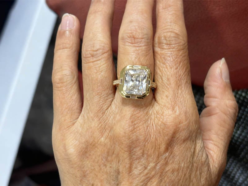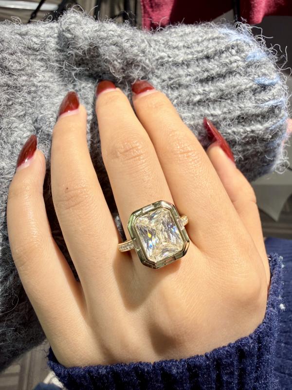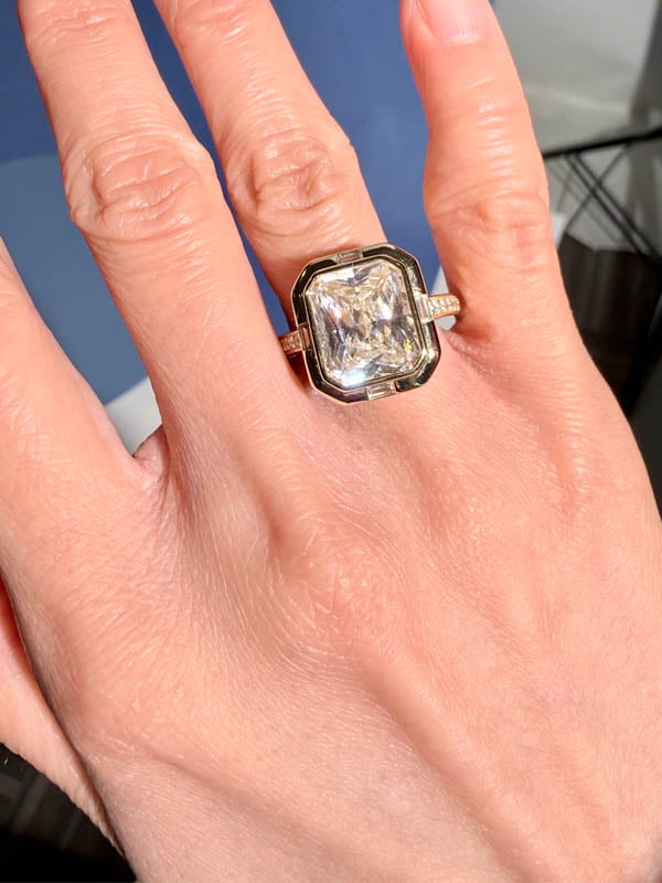 Italo Bezel Set Side Stone 5.5 Carat Radiant Cut Engagement Ring For Women