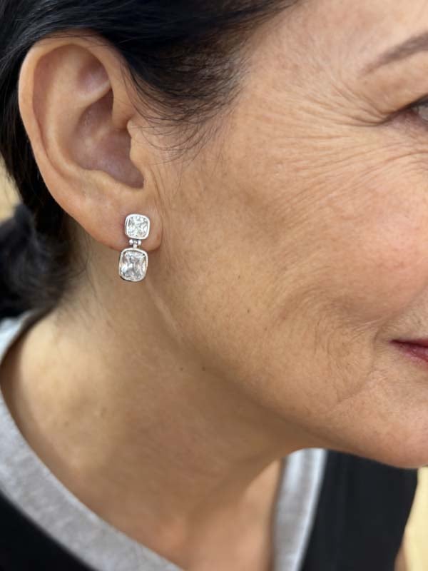 Italo Bezel Setting Cushion Cut Drop Earrings For Women