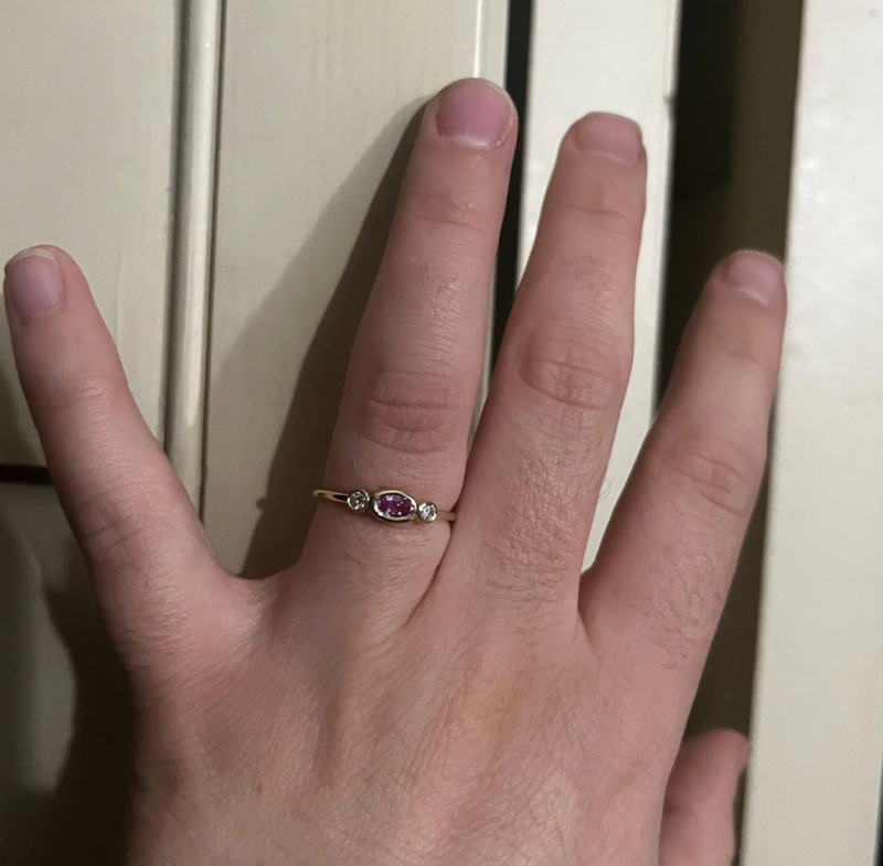 Italo Bezel Setting Oval Cut Pink Sapphire Three Stone Engagement Rings