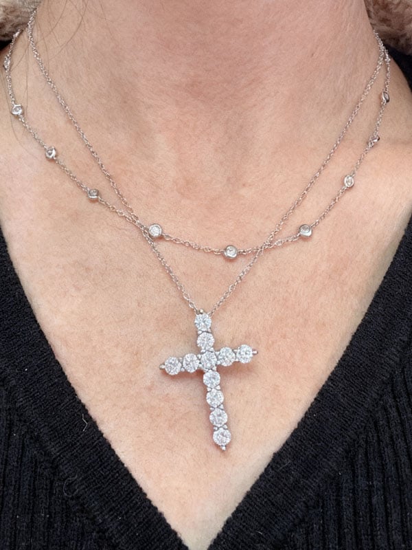 Italo Bezel Setting Round Cut Cross Layering necklaces For Women