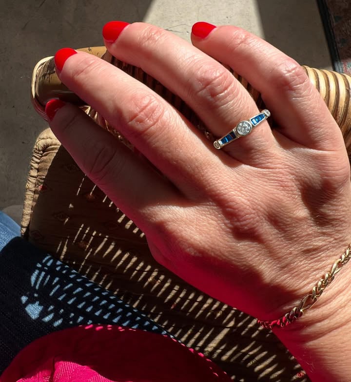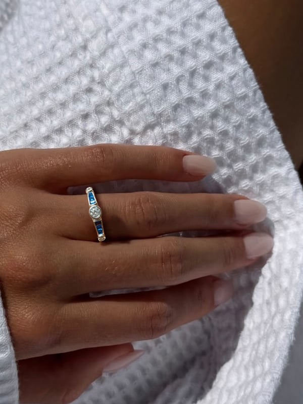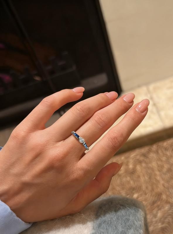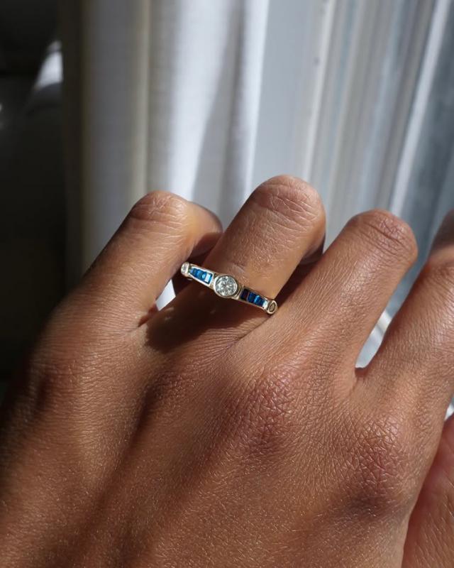 Italo Blue Sapphire Ring Bezel Setting Vintage Wedding Rings For Women Promise Ring