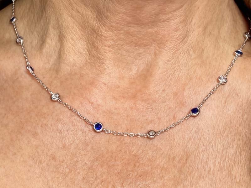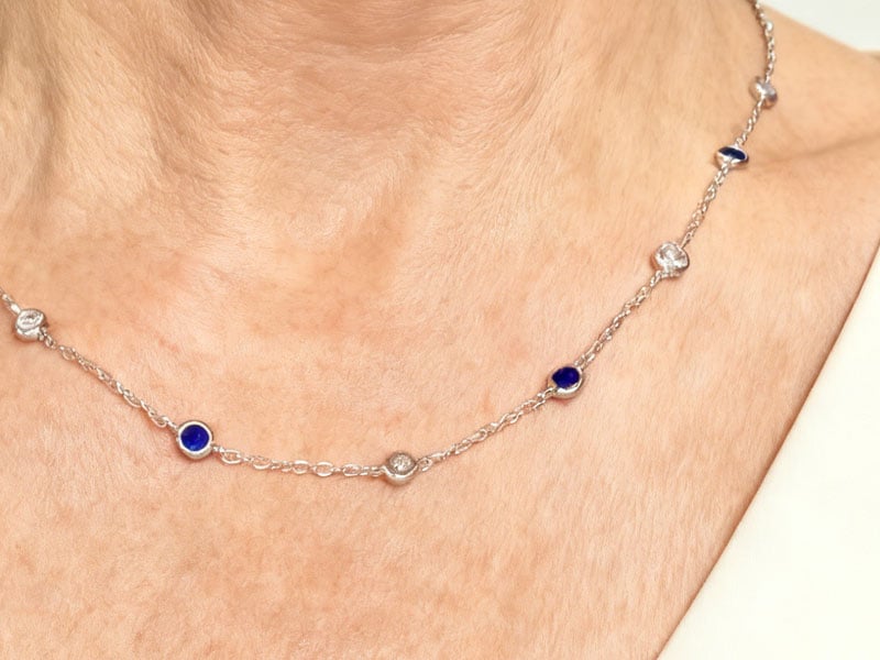 Italo Blue & White Sapphire Bezel Set Tennis Necklace
