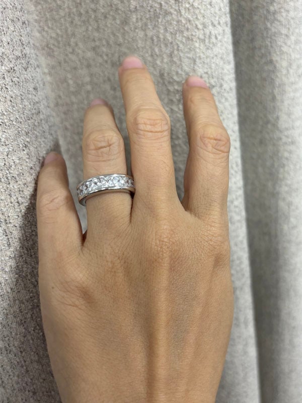 【Design】Embrace the seamless channel setting of this stunning Cushion Cut Eternity Wedding Band, masterfully crafted from 925 Sterling Silver and showcasing 3.68 CT. TW of brilliant cushion-cut white sapphires—this extraordinary Cushion Cut Eternity Wedding Band redefines eternal elegance!