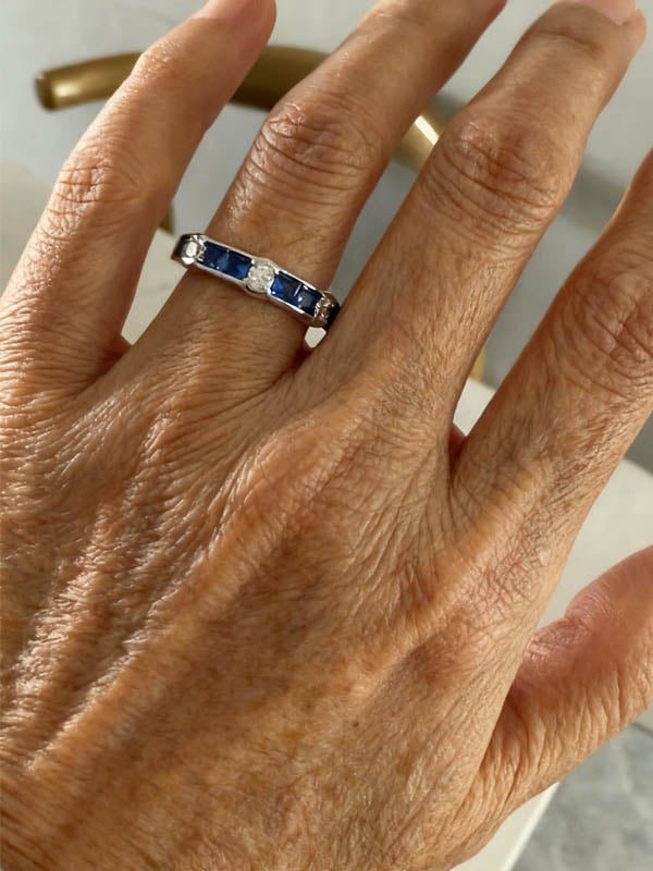 Italo Channel Set Asscher Cut Blue Sapphire Half Eternity Band Ring