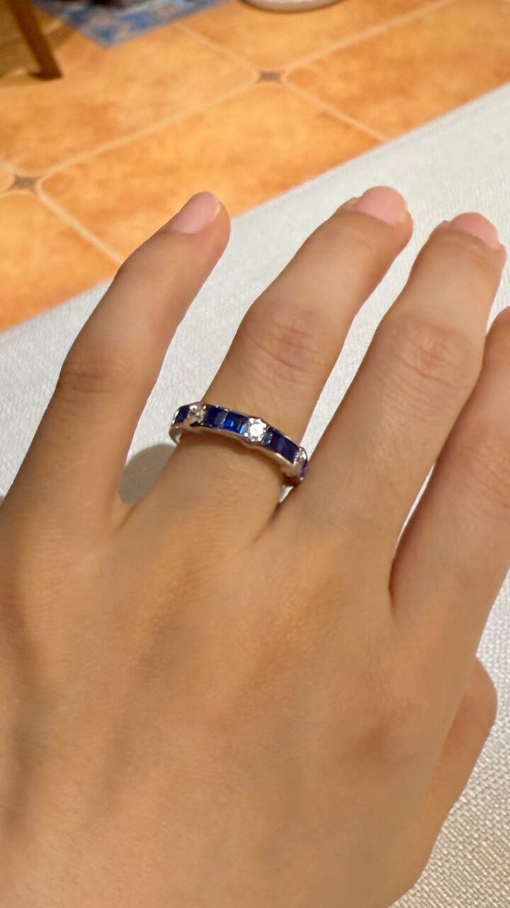 Elevate your jewelry collection with Italo Jewelry’s stunning Blue Sapphire Half Eternity Band, crafted from premium 925 Sterling Silver and showcasing 1.38 CT dazzling Asscher-cut blue sapphires in a secure channel setting—luxury that weighs just 4.58g!