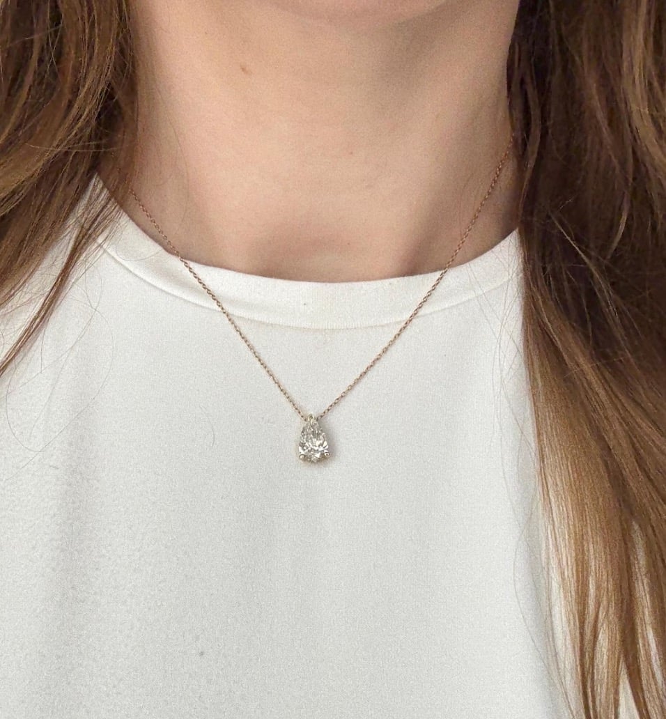 Italo Golden Classic Pear Cut Solitaire Pendant Necklace