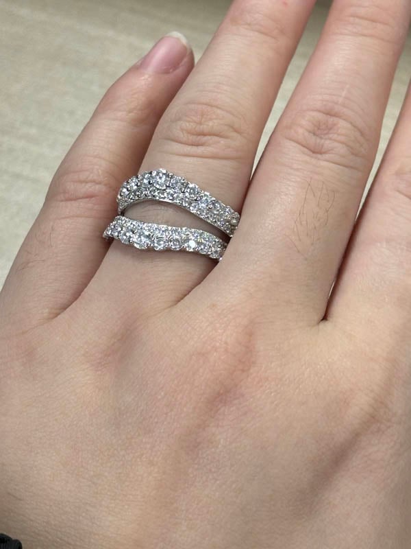 Adorn your finger with our exquisite Crown Round Cut Ring, featuring a majestic crown-shaped guard enhancer set with 1.24 carats of brilliant round-cut white sapphires. This stunning Crown Round Cut Ring showcases an elegant 15.50mm wide design that beautifully frames your center stone, while the meticulously crafted Crown Round Cut Ring adds royal sophistication to any engagement ring or worn alone as a statement piece.