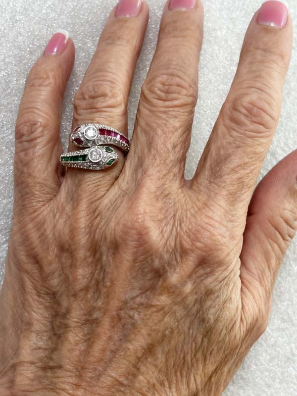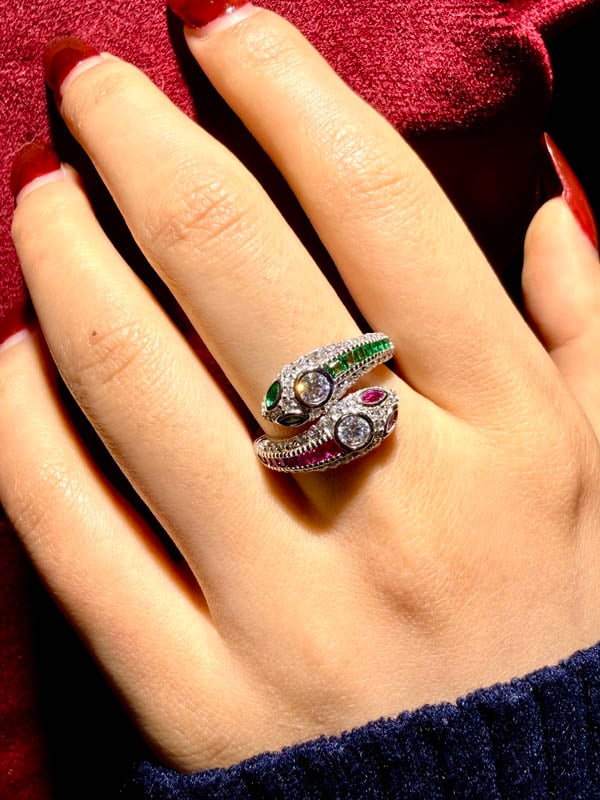 Italo Decorated Snake Emerald Sapphire Ruby Rings For Women