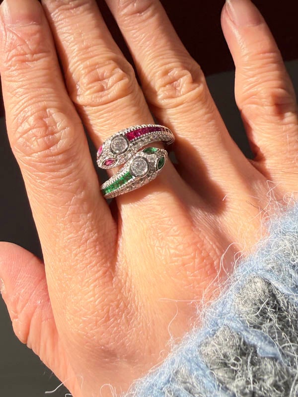 【Design】Embrace the mesmerizing snake design of our 4.75g 925 Sterling Silver Emerald Sapphire Ruby Rings, featuring a vibrant 1.71 CT blend of marquise and round-cut gems for a truly unique statement!