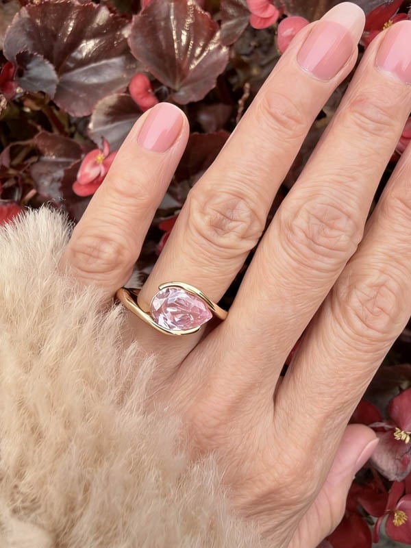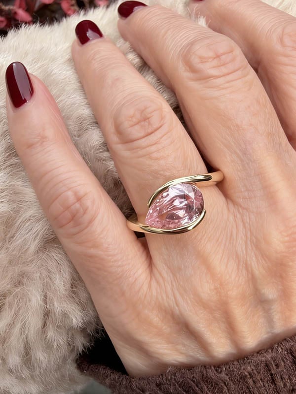 【Design】Discover our innovative East West setting featuring this stunning Pink Sapphire Engagement Ring, this exquisite Pink Sapphire Engagement Ring showcases a 2.60 CT pear-cut pink sapphire in 18K Gold Plated Sterling Silver weighing 5.42g!