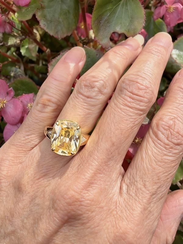Italo Elongated Cushion Cut Yellow Topaz Engagement Ring 5.5 Carat Ring