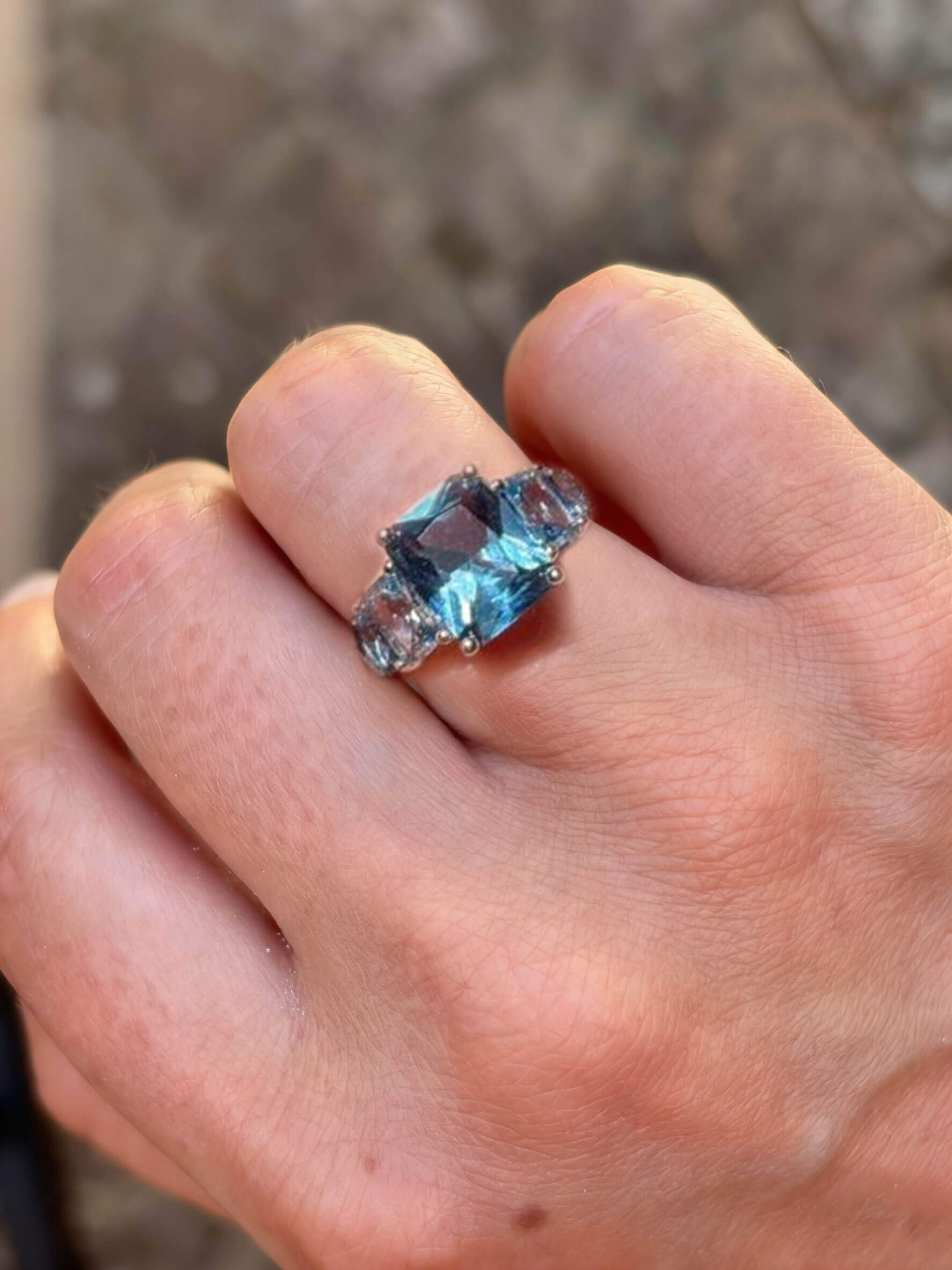 Italo Five Stone Blue Topaz Radiant Cut Engagement Ring