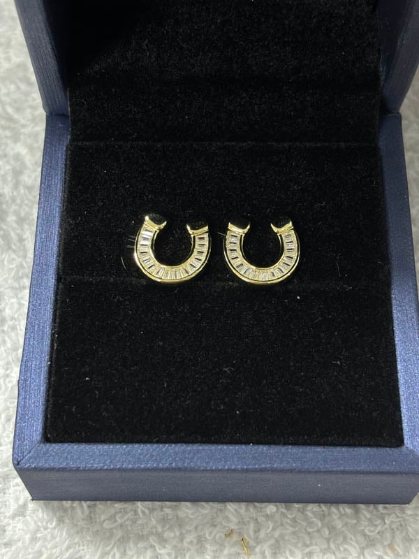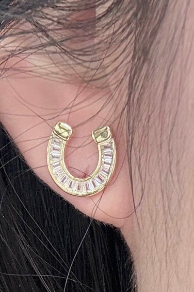 Italo Golden Baguette Cut Horseshoe Stud Earrings