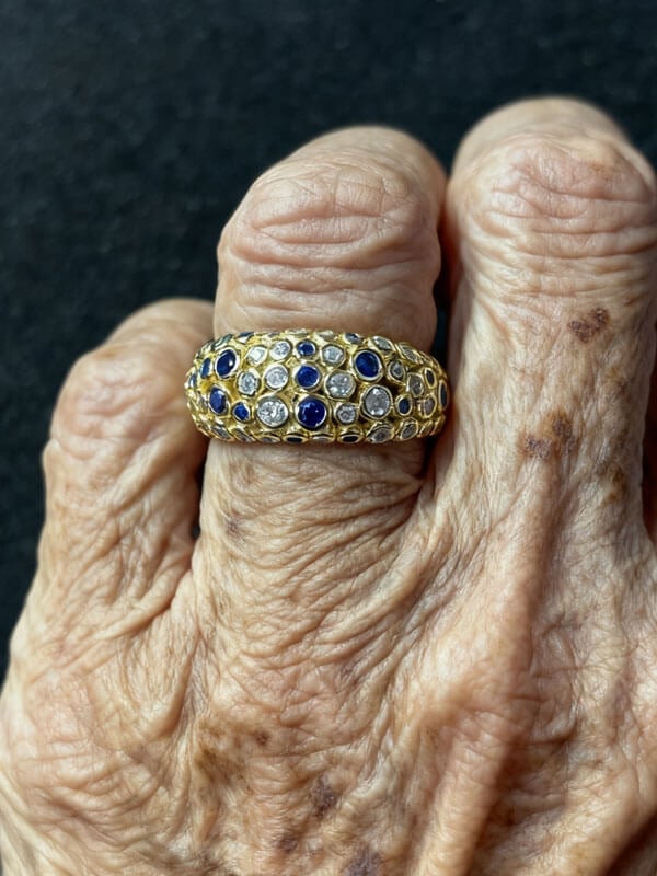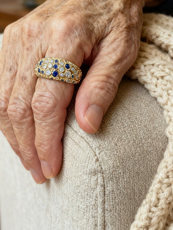 Italo Golden Bezel Setting White & Blue Sapphire Band For Women Cocktail Rings