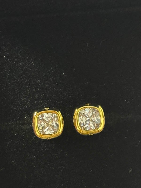 Italo Golden Flush Setting Cushion Cut Stud Earrings For Women