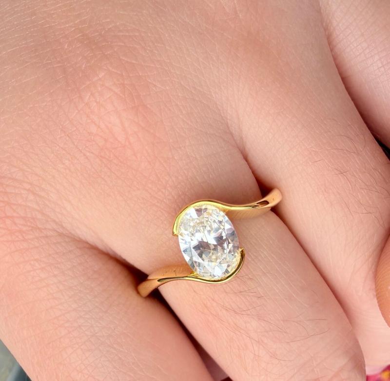 Italo Golden Half-bezel Oval Cut Engagement Ring For Women