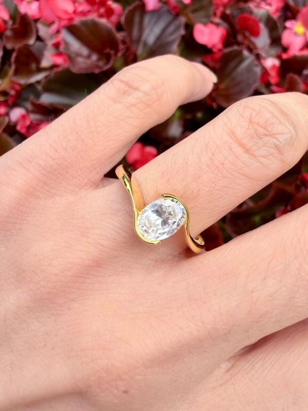 【Design】 Italo's Half-bezel Oval Cut Engagement Ring showcases a stunning 1.25 CT oval-cut white sapphire (6x8mm) in a contemporary half-bezel setting. The Half-bezel Oval Cut Engagement Ring features 1.47 CT total weight with accent stones in 18K gold-plated sterling silver for maximum brilliance.