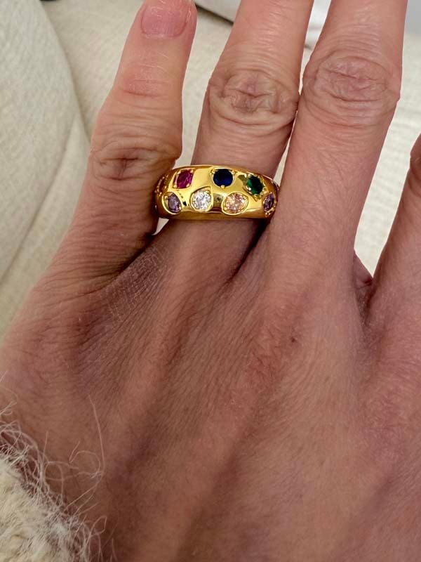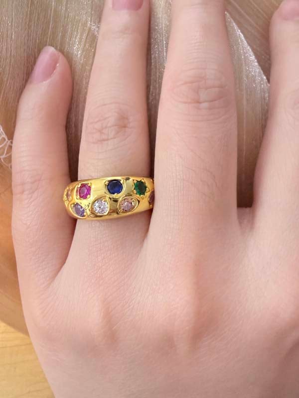 Italo Golden Round Cut Multi Color Wedding Band For Women Cocktail Rings