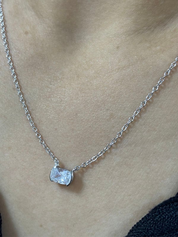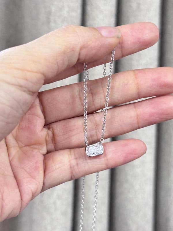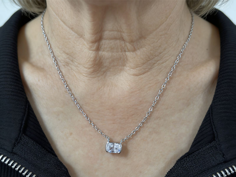 【Design】Embrace the modern half-bezel setting of this stunning Cushion Cut Pendant Necklace, masterfully crafted from 925 Sterling Silver and showcasing 1.00 CT. TW of radiant cushion-cut white sapphires—this extraordinary Cushion Cut Pendant Necklace redefines contemporary elegance!