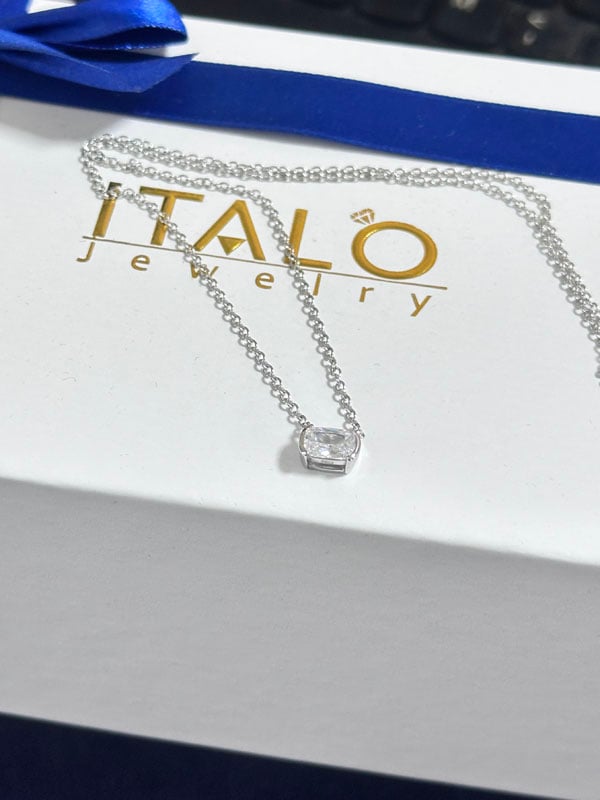 Italo Half Bezel Cushion Cut Pendant Necklace For Women