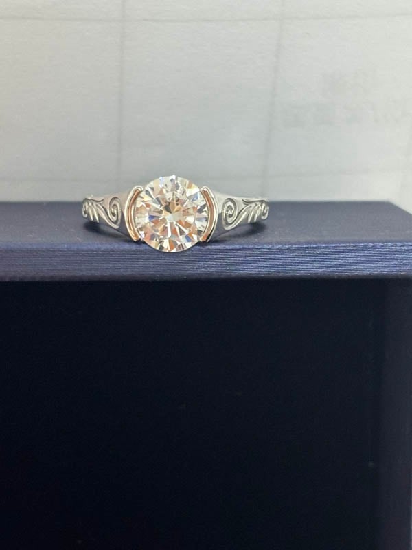 Italo Half-bezel Round Cut Filigree Engagement Ring For Women