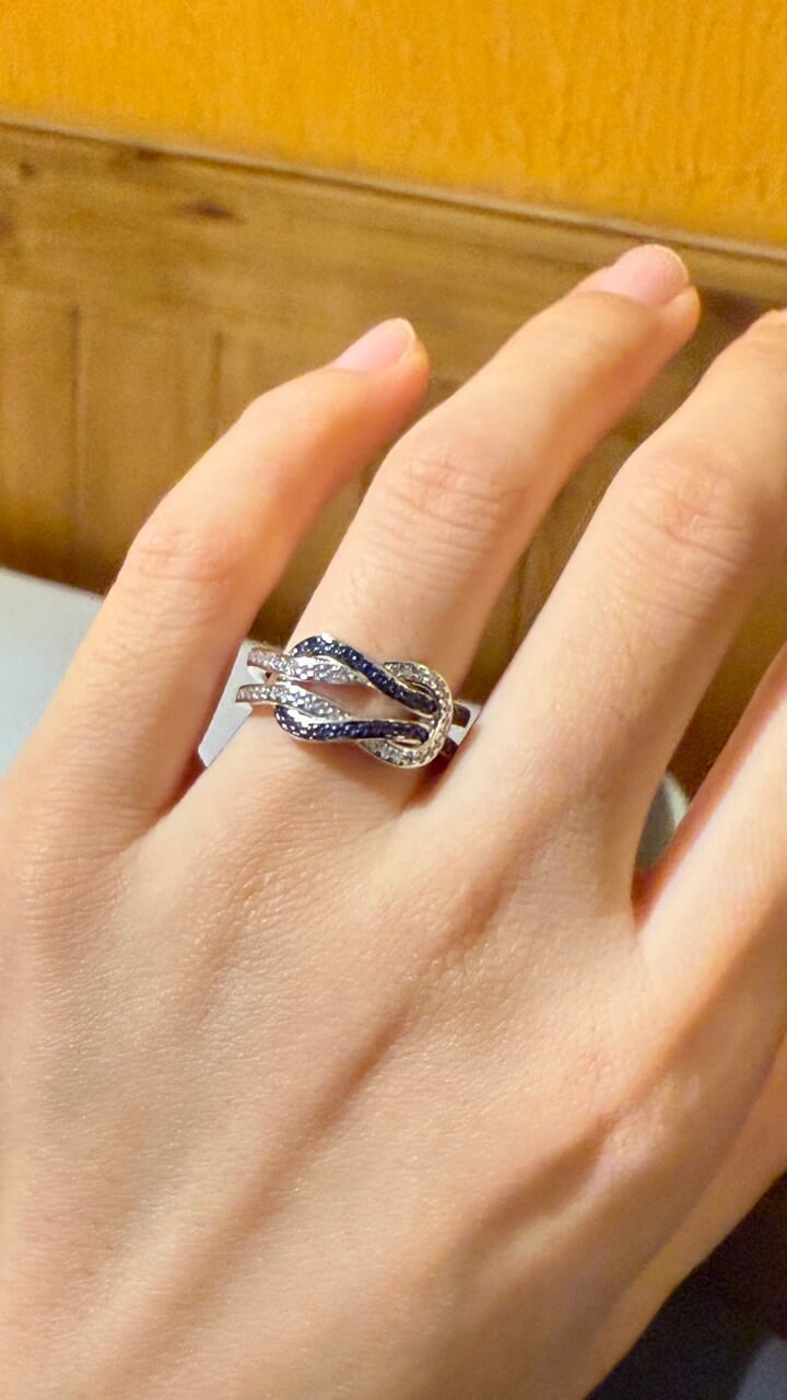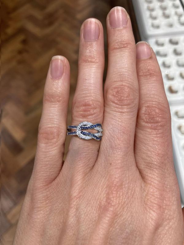 Italo Infinity Ring 2 Tone Blue & White Sapphire Wedding Band For Women